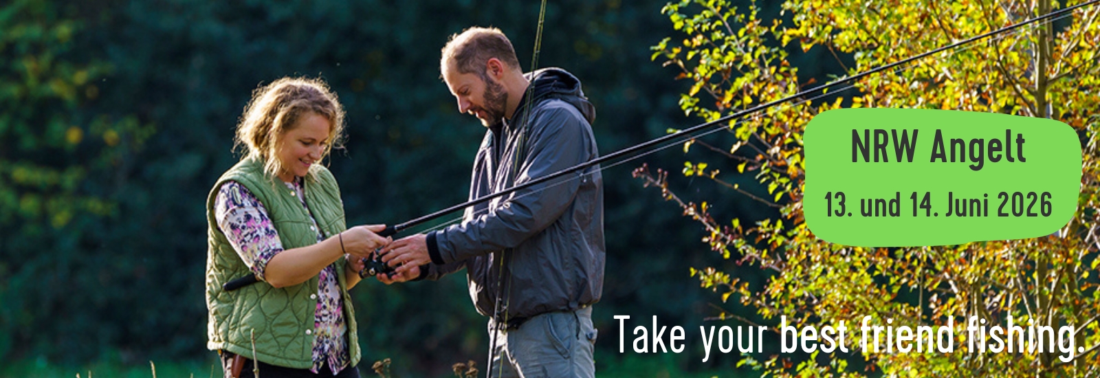 „NRW angelt“ ist das Angel-Aktionswochenende in Nordrhein-Westfalen. Menschen ohne abgelegte Fischerprüfung dürfen jährlich am Samstag und Sonntag der 24. Kalenderwoche in Begleitung von volljährigen Personen, die im Besitz eines gültigen Fischereischeins sind, praktische Angelerfahrungen sammeln, die Natur am Wasser mit anderen Augen erleben und etwas über die nachhaltige Nutzung von Fischbeständen lernen. In diesem Jahr findet „NRW angelt“ am 13. und 14. Juni 2026 statt.