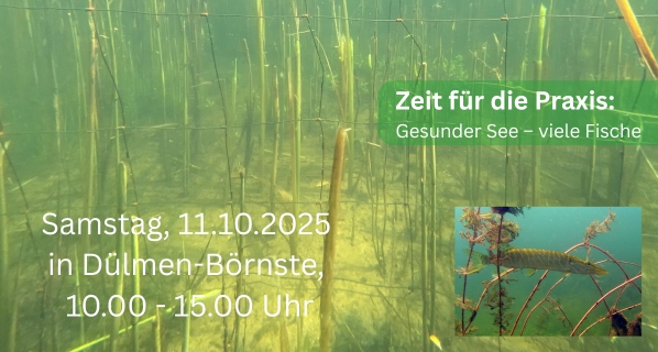 Ab sofort können sich Angler, Gewässerwarte und Angel- oder Gewässer-Interessierte zum Praktiker-Tag Gesunder See – viele Fische für Nordrhein-Westfalen am 11. Oktober 2025 anmelden. Die Veranstaltung in Dülmen-Börnste ist einer von mehreren deutschlandweiten Praktiker-Tagen, zu denen das Projekt AngelGewässer in Kooperation mit dem Deutschen Angelfischerverband (DAFV) e. V. und dem LFV Westfalen und Lippe e. V. einlädt. Auf den kostenfreien Veranstaltungen erfahren die Teilnehmer praxisnah, wie Angelvereine den Lebensraum in ihren Gewässern
